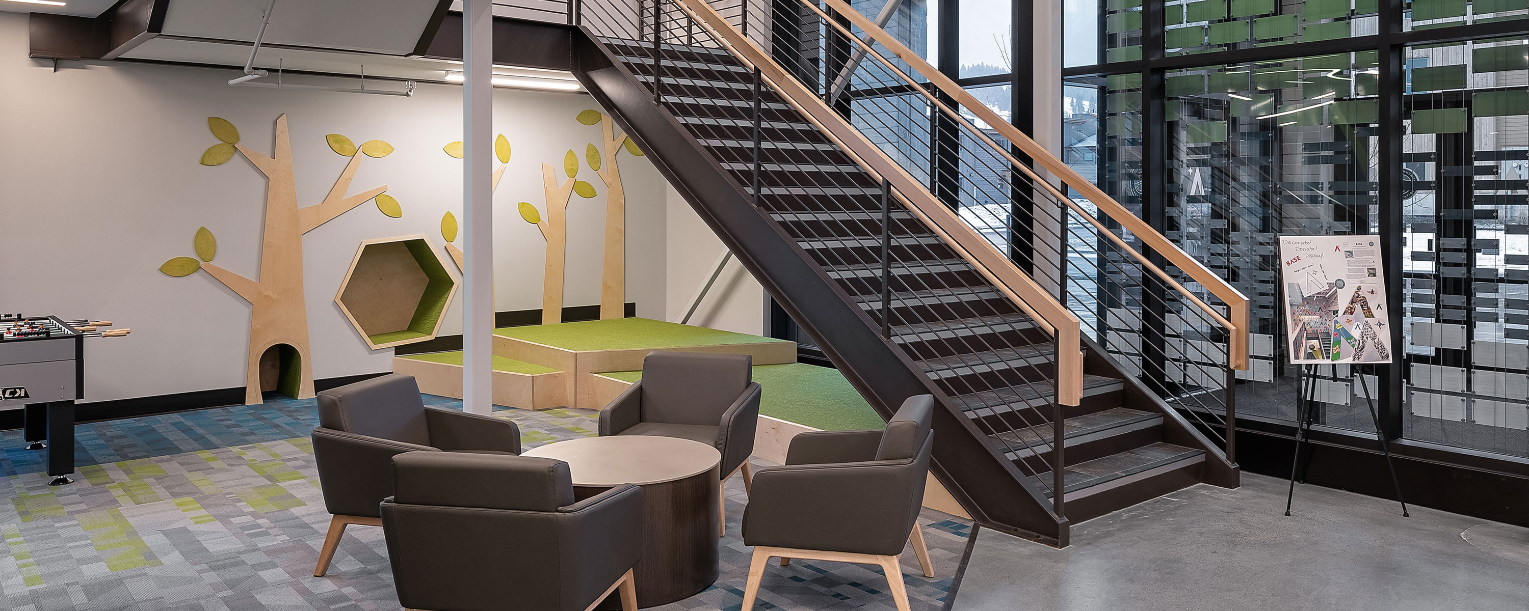Our client, Big Sky Community Organization (BSCO), drafted the narrative for this LEED credit point based on our design solutions for the interior spaces in the building, and this narrative was edited to focus on the interior design biophilic concepts.