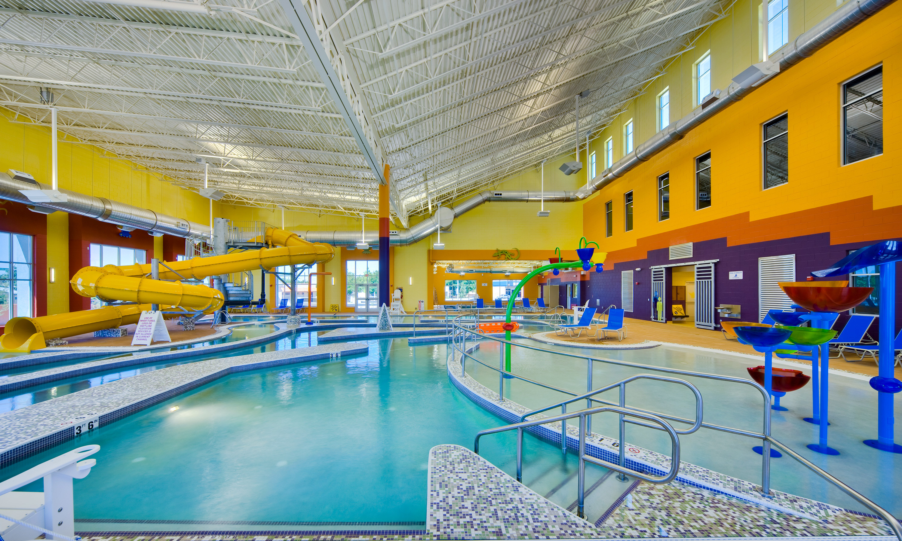 The 35,000 square foot center includes a lobby, leisure pool, lockers, fully outfitted fitness center, gymnasium, community meeting rooms, and a competitive lap pool.